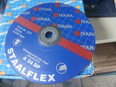 Disques à meuler pour métaux Marque : Ivana Diamètre : 23 cm Quantité : +- 40 pièces Etat : neuf Remarque : lot tel que sur photos, armoires non incluses