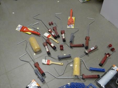 BACS À PEINTURE, ROULEAUX, GRILLES, PINCEAUX, GRATTOIRS ET MANCHES DE ROULEAUX