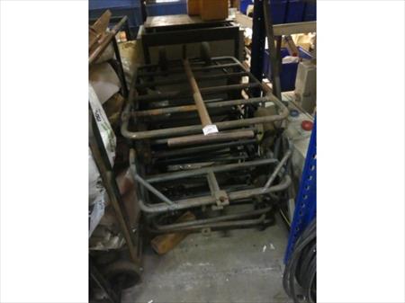 Plateaux/supports métalliques sur roulettes Quantité : 5 Dimensions d'un plateau : 70 cm x 100 cm x 23 cm Etat : usagé Remarque : enlèvement et chargement à charge de l'acquéreur, lot tel que sur photos, barres de tractions amovibles incluses