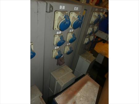 Armoires électriques de chantier Tension : 230 V / 380 V Quantité et dimensions : 2 x 32 cm x 110 cm x 110 cm 1 x 30 cm x 70 cm x 20 cm Nombre de sorties : 2 x 15 sorties 1 x 4 sorties Etat : usagé Remarque : enlèvement et chargement à charge de l'acquéreur, lot tel que sur photos