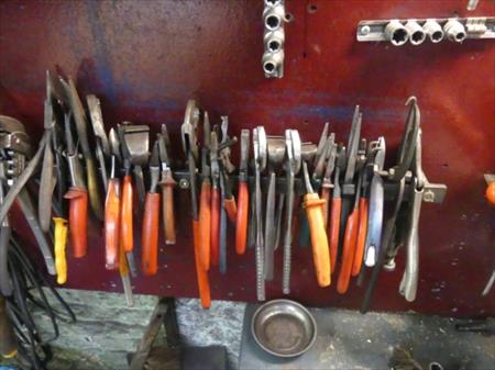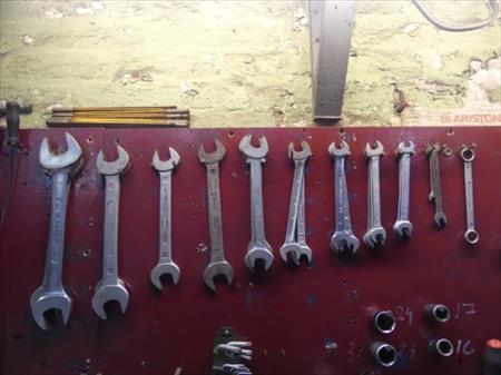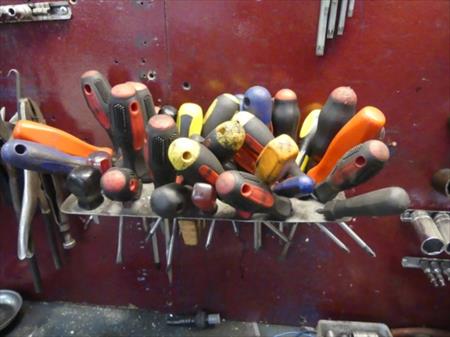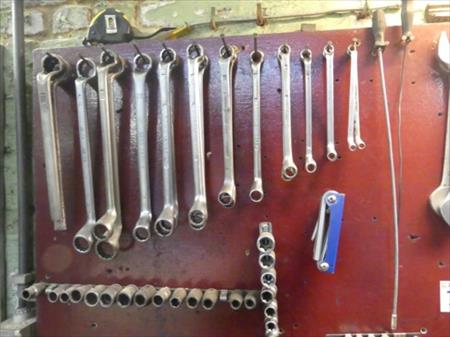 Tableau d'outillage : pinces, clés plates, tournes vis,