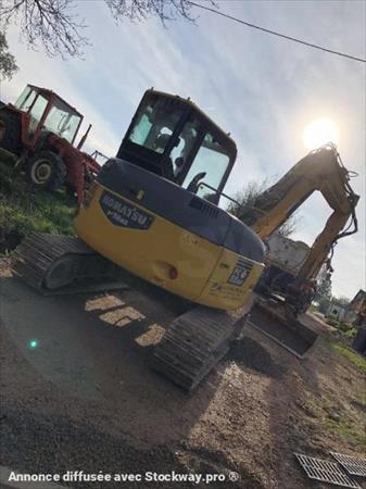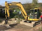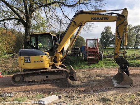 Mini-pelle KOMATSU PC88MR-6 Année : 2008 Heures : 6700 Poids : 8.4 tonnes Chenilles acier Ligne hydraulique Coupleur + 3 godets Machine disponible début 2020