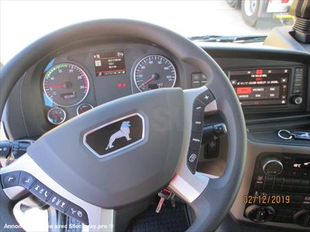 NEUF DISPONIBLE Moteur D2676LF78 - 510 ch/375 KW Euro 6 SCR Coupure au ralenti (Idle Shut Down) Frein moteur régulé EVBec Ralentisseur MAN PriTarder Embrayage monodisque renforcé Essieu droit, à entraînement hydrostatique (MAN HydroDrive) Ressorts AV paraboliques 8,0 t version mi-haute Suspensions AR pneumatiques,13 t Pont AR à réducteurs planétaires avec Blocage de différentiel Réservoir à carburant de 400 l à droite et 60l dAdBlue Volant multifonction Système MAN Easy Start antirecul Signal de freinage d'urgence (ESS) Assistant de freinage durgence Emergency Brake Assist2 désactivable ABS ASR (antipatinage au démarrage) (ESP) Système électronique de stabilité Chauffage d'appoint EBERSPÄCHER AIRTRONIC D2 (aérotherme) Climatiseur régulation thermique automatique Avertisseur acoustique pour marche arrière engagée désactivable 2 gyrophares à LED Radio MAN MediaTruck Advanced 12 V avec écran couleur 7 pouces + SD de navigationEUROPE INTEGRALE Fonctionnalité mains libres pour deux téléphones portables (connectables au volant multifonctions et au réseau Bluetooth®)