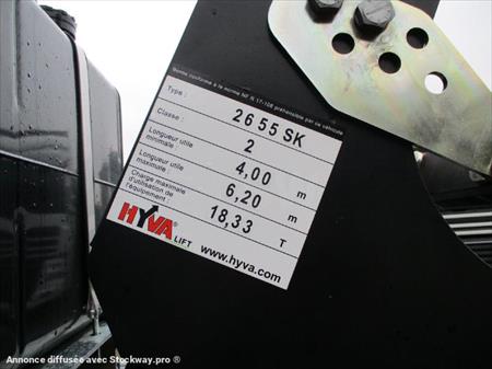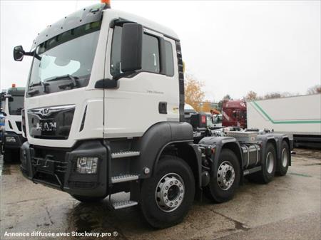 DISPONIBLE SUR PARC Moteur D2676LF52 - 460 ch/338 kW EURO 6 Cylindrée de 12,4 l Boîte de vitesses MAN TipMatic® 12 28 OD Logiciel de boîte de vitesses MAN TipMatic® Offroad Exploitation en tout-terrain - Fonctionnalité de la boîte de vitesses : EfficientRoll ressorts AR paraboliques 13 t - Pont AR à réducteurs planétaires - Blocage de différentiel Réservoir à carburant de 300l à gauche et 35 l d'AdBlue Attelage de remorque ROCKINGER 50 BNA A Freins à disque pour essieu avant Tambour Arr MAN BrakeMatic (système freinage électronique) Système MAN EasyStart antirecul ABS (système antiblocage des roues) logique terrain pour ABS PTR Maxi 60.000 kg paroi AR de cabine avec 2 découpes en verre teinté - 2 gyrophares Climatiseur - Radio MAN Media Truck Advanced 12 V avec écran couleur 7 pouces et prédisposition à la navigation SD de navigation EUROPE INTEGRALE - Fonctionnalité mains libres pour deux téléphones portables (connectables au volant multifonctions et au réseau Bluetooth®) et caméra espace arrière Carrosserie HYVA bras hydraulique type T26-55-SK Pour benne longueur mini - maxi : 3450 - 6600mm Potence Coulissante & Articulée, Classe 2, Hauteur 1420mm Verrouillage arrière Combilock (verrou réversible intérieure/extérieur), barre anti-encastrement hydraulique Inclinée POMMIER Blocage du dernier essieu par vérins anti-cabrage courts Verrouillage hydraulique avant