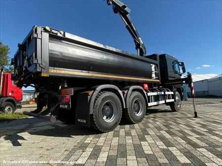MAN tgs 26.360 6x4 bi benne grue Date immatriculation 04/2012 Transmission Boîte manuelle Kilométrage 170 000 km Puissance 360 Ch Cylindrée 10 518 ccm Couleur Noir Poids total autorisé en charge (PTAC)26 000 kg ptra 44000 Année de 2012 Longueur4 900 mm Largeur2 470 mm Hauteur 900 mm Formule des roues 6x4 Essieux 3 Equipements hydrauliques Système hydraulique de la benne Grue hiab 166 3 extension 5 et 6 +radiocommande + BENNE PRENEUSE