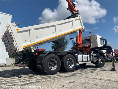Camion Marque : Volvo type: FM puissance :400 Année : 2008 - 23/07/2008 Km : 316 000 kms Boite de vitesse : manuelle Nombre Essieux :6x4 Suspension : Grue Marque : terex Type de grue : 165 Année : 2008 Radio commande : oui Nombre de stabilisateurs : 2 Position grue : arrière cabine Nombre dextensions : 3 Longueur Max : 10,3m Crochet: oui Cabine Pare soleil : oui Climatisation : oui Contrôle anti patinage : oui Blocage de différentiel : oui Radio cd : oui Chassis Ptac : 26t P.V: 16t482 Taille pneu avant : Taille pneu arrière : Attelage remorque : oui Superstructure Marque : benne Dimension: Capacite: Entretien: Révision de la grue Révision du camion (vidange moteur boite pont) Passage aux mines Controle de grue