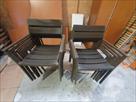 11 chaises de jardin/terrasse. Partie assise en bois fini et corps en fer.