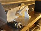 Trancheuse auto-affutéeTension : 230 V monophaséDimensions totales : 69 cm x 75 cm x 62 cmEtat : non testéRemarque : enlèvement et chargement à charge de l'acquéreur, lot tel que sur photos, table de travail non incluse