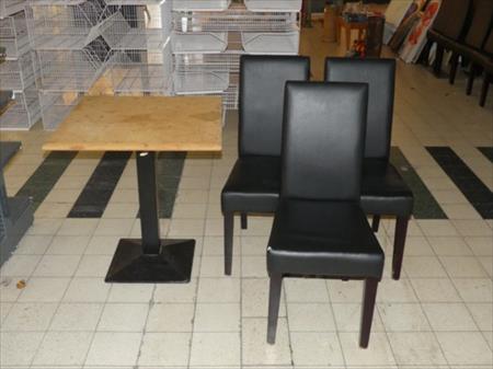 TABLES EN BOIS AVEC PIÈTEMENT MÉTALLIQUES, CHAISES EN SIMILI CUIR    | Mise à Prix:    20,00 €