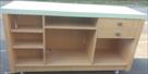 vue intérieure, 3 étagères bois, et 2 tiroirs