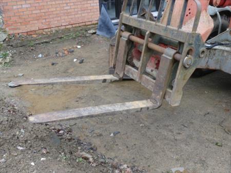 Fournit avec fourches à palettes et 1 bac de 220 cm de largeur