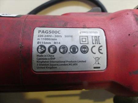 Perceuse à percussion Marque : SPIT Modèle : 320 Année : 2010 Tension : 230 V monophasé Puissance : 650 W Etat : testé Meuleuse d'angle Modèle : PAG500C Tension 230 V monophasé Puissance : 500 W Etat : A reconditionner