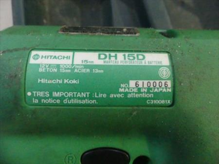 Burineur sur accus Marque : HITACHI Modèle : DH15D Tension : 12 V continu Etat : testé Fourni avec 1 batterie et 1 chargeur