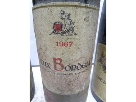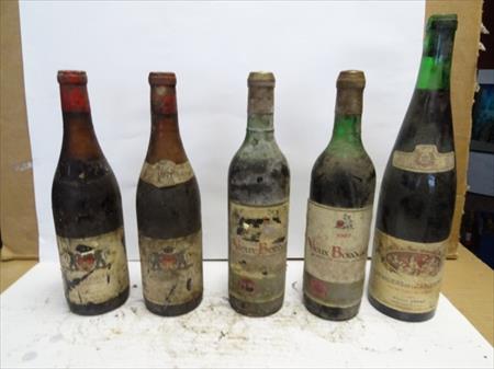 5 bouteilles de vin :1 Chevalier de la Table ronde2 vieux bordeau (Année : 1967)2 Côte du Rhône Village (Année : 1971)Aucune garantie de l'état des bouteilles, pas de reprise , pas d'échange