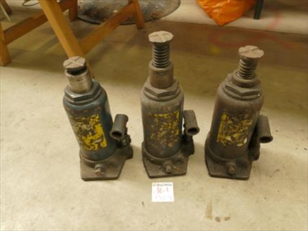 Cric hydraulique Quantité : 3 Charge maximum : inconnue Etat : usagé Remarque : lot tel que sur photos