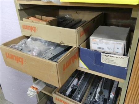 Coulisses Blum, pieds pvc, matériel de fixation, charnières Argenta,