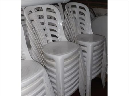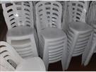 4 CHAISES DE TERRASSE EN PLASTIQUE (EMPILABLES) + 1 TABLE RONDE (PLIANTE