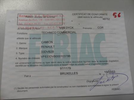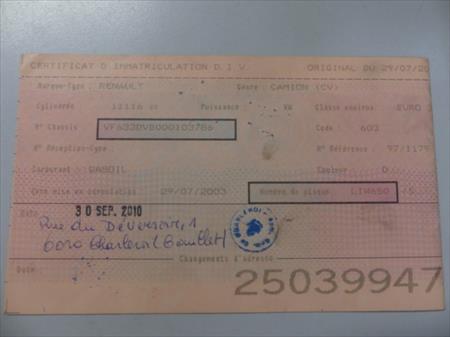 - Certificat de visite au contrôle technique (valable jusqu'au 4/2/2016)