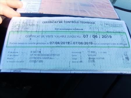 - Certificat de visite du contrôle technique (valable jusqu'au 07/06/2019)