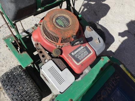 Tondeuse thermique Marque : Ransomes Modèle : XM3605 Largeur de coupe : 85 cm Dimensions totales : 190 cm x 90 cm x 110 cm Etat : non testé Moteur essence : Marque : Kawasaki Modèle : FC420V