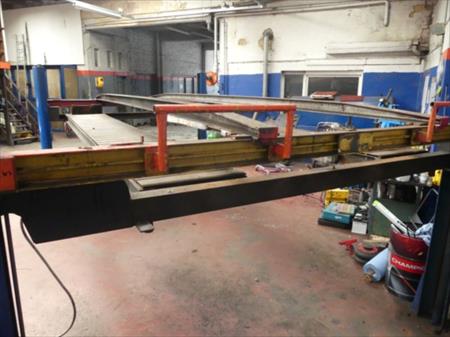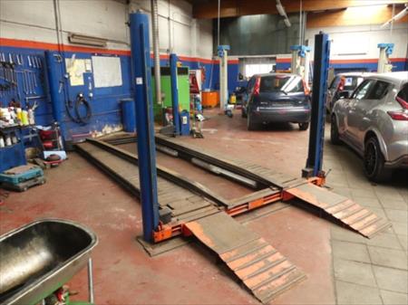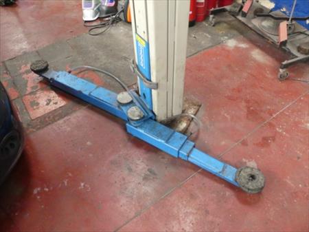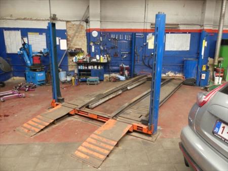 Pont de garage Marque : Bradbury Modèle : 735 Tension : 380 V triphasé Capacité de levage : 3000 kg Hauteur de levage maximale : 160 cm Dimensions totales : 260 cm x 467 cm x 202 cm Etat : en état de fonctionnement Remarque : enlèvement, démontage et chargement à charge de l'acquéreur, lot tel que sur photos