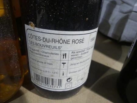 Bouteilles de vin Type de vin : rouge, blanc Quantité : +/- 60 bouteilles Etat : bouteilles fermées Remarque : lot tel que sur photos