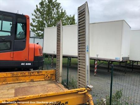 Remorque GOURDON porte engins 2 essieux 1ère M.E.C : 21/06/2010 Suspension lames Plancher bois Dimensions utiles : 3.58m x 1.70m Rampe aluminium Flèche réglable KNOTT Pneumatiques : 195/R14C PV : 750kg PTAC : 3500kg Charge utile : 2750kg