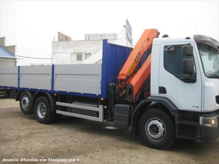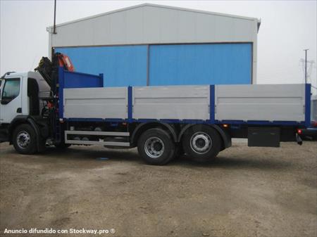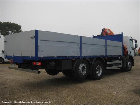 CABINA CORTA, A/A, E/E, CRUISER, RADIO CD, MANOS LIBRES, FRENO MOTOR, BLOQ. DIFERENCIAL, TACOGRAFO DIGITAL, 16 VELOCIDADES, SUSP. NEUMÁTICA, 3º EJE DIRECCIONAL, GRUA PALFINGER PK-11.502, CUATRO HIDRAÚLICAS, ALCANCES: 4,3m.: 2.250 kg., 5,9m.: 1.500 kg., 7,9m.: 1.040 kg., 10,2m.: 770 kg., 12,4m.: 620 kg., RUEDAS: 315/80 R 22,5, 1º EJE: 70%, 2º EJE: 40%, 3º EJE: 10%, (17 EUROPALLETS)