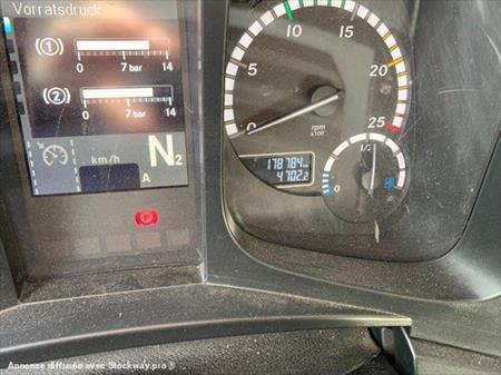 MERCEDES-BENZ 1848 LS 4x2 KW: 350 PS: 476 Classe d'émission: Euro 6 Kilométrage: 178784 Longueur: 6157 Largeur: 2550 Hauteur: 2500 Première inscription: 14.08.2017 Particularité: L-Classic / PTO / Navi / Retarder Perm. Poids total: 18000 Charge utile: 10089 Poids à vide: 7911 Mercedes Powershift 3 Prise de force Blocage différentiel HA Suspension à lames de l'essieu avant Essieu arrière à suspension pneumatique Version droite essieu avant Essieu avant 8,0 à Réservoir principal ... 480l Réservoir AdBlue 75l Version acier pare-chocs Lane Keeping Assist attention Assist Système de contrôle de traction (ASR) Système de freinage antiblocage (ABS) Assistant aux règles de stabilité électrique (ESP) Système de freinage électronique (EBS) Frein moteur haute performance (HPB) Freins à disque VA et HA Pour retarder Régulateur de vitesse Toit relevable, électrique air horn Suspension de cabine confortable en acier Cabine L ... ClassicSpace verrouillage centralisé parasoleil Siège conducteur confort, suspension pneumatique ... Chauffage des sièges Passager de siège fonctionnel Lit confort en dessous Fenêtres électriques Rétroviseurs extérieurs électriques ... chauffants frigo Radio CD Bluetooth navigation Mains libres Volant multifonction Phares anti-brouillard Feux de jour ... LED Système de nettoyage des phares feux de travail