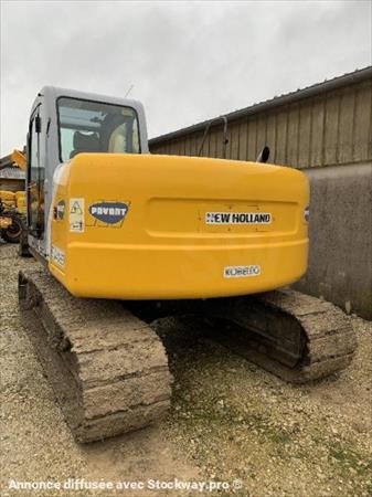 Pelle sur chenilles NEW HOLLAND type E145 Année : 2007 Heures : 6500 Poids : 16 t Flèche monobloc - Lignes hydrauliques Tuiles acier de 600 mm (largeur machine 2.60 m) Coupleur MORIN + 3 godets (tranchée, terrassement et curage inclinable)