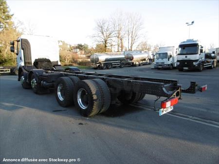 PREMIUM LANDER 460.32 8x4 3M CABINE COURTE CLIM PACK ELECTRIQUE VISCOPE REGULATEUR DE VITESSE TO RADIO CD BLUETOOTH TROMPES DE TOIT BV OPTIDRIVER RALENTISSEUR HYDRAULIQUE VOITH BLOCAGE INTER PONTS / INTER ROUES ESSIEU AV 9T SUSPENSION AR PNEUMATIQUE JANTES ALU 8200MM DE CHASSI DISPO LONGEUR CARROSSABLE MINI 6575MM / MAXI 7852MM