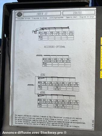 veco stralis 310 663000KMS PREMIERE IMMATRICULATION 12/10/2006 GRUE pm 23tm Marque Iveco Type de 310 ch Dimensions 920 X2,55CMS Marque du moteur Iveco Type de moteur Type de boîte de vitesses manuelle Boîte marque ZF 16 Frein moteur Type de ralentisseur frein moteur Nombre de vitesses 16 Norme Euro 4 Abs Blocage de différentiel Châssis Poids net 14980 KGS Poids combiné brut 26000 Empattement 510 (1-2) Nombre d'essieux entraînés 1 Nombre d'essieux 3 Suspension pneumatique Cabine Type de cabine jour Pare-soleil Climatisation Superstructure plateau coulissant fiault grue pm 23tm extension radiocommande