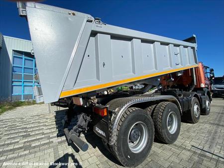scania p 400 8x4 bi benne Date de première mise en circulation 15-09-2011 330 000KMS marque Scania modèle P 400 Type de cabine CP14 couleur orange Climatisation Radio CD / DVD Régulateur de vitesse Tachygraphe numérique blocage différentiel ptac 32000 KG poids a vide 14910 KG Capacité de chargement 17090 KG Nombre d'essieux 4 Type 8X4 Taille des pneus 13 R22.5 Puissance moteur 400 ch Norme d'émission EURO 5 capacité 11705 CM3 transmission MANUEL Type bi benne longueur 6,2 hauteur 0,9 largeur 2,35