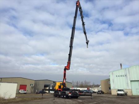 Marque Scania Type R480 8x4 +GRUE PK72000+JI Date De 1ere Mise En Circulation 17/03/2008 Kilométrage 43200 Dimensions8990x250x390 Essieu Essieu Directeur 2 Nombre D'essieux Moteurs./2 Nombre D'essieux 4 Suspension ressorts - lames Grue Constructeurs PALFINGER Type De pk72000 année 2008 Maximum longueur 30m Maximum poids 72tm À Distance radiocommande stabilisateur 4 Position Derrière La Cabine extension hydraulique 12 Crochet Poids Net21040 Poids Brut Combiné ptac 32000 ptra 40 r433-1 60t Empattement 430 Capacité De Carburant 330 litres Condition Des Pneus15/15 /60/60 Taille De Pneu (Avant)385/65R22, 5 Taille De Pneu (Arrière)315/80R22.5 Motorisation Marque Du Moteurmotormerk_Scania Type De MoteurD/DC12 17 Puissance 480 Boîte De Vitesses Boîte de vitesse manuelle Transmission De La _Scania Nombre De Vitesses 16 Euro Standard 4 Blocage De Différentiel Régulateur De Vitesse Cabine Type De Cabine de jour Pare-Soleil Climatisation Attache remorque, Système hydraulique, Prise de force, Cruise control