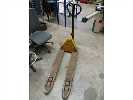 Transpalette Marque : Daghuyt Longueur des fourches : 114 cm Dimensions totales : 150 cm x 53 cm x 117 cm Etat : testé Remarque : enlèvement et chargement à charge de l'acquéreur