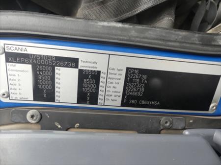 (MATIS : 1216) CAMION PORTE-CONTENEUR SCANIA P380 À RECONDITIONNER (2009 - 229.664 KM) SCANIA P