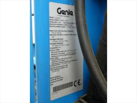 Nacelle élévatrice Marque : Genie Modèle : GS-5390 Année : 2006 Puissance : 35.8 kW Heures : 2204 h Capacité : 680 kg Poids : 8946 kg Hauteur d'élévation : 18 m Dimensions totales replié : 490 cm x 219 cm x 315 cm Etat : testé Chargement à charge de l'acheteur