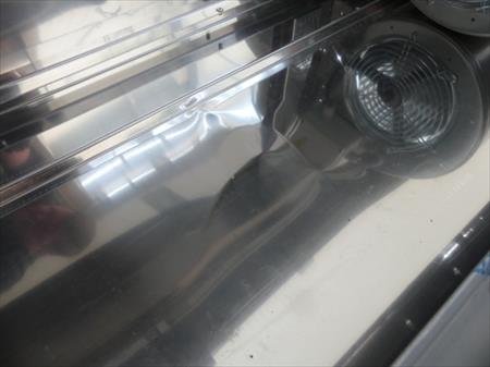 Hotte d'aspiration extraction par le haut Modèle : CC-3009 Dimensions : 260 cm x 90 cm x 45 cm Etat : neuf mais abîmé lors de manipulation, sans variateur de vitesse Abîmé sur le côté gauche