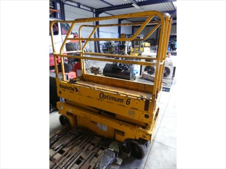 Nacelle ciseau Marque : Haulotte Modèle : Optimum 6 Hauteur d'élévation : 510 cm Dimensions totales replié : 160 cm x 78 cm x 184 cm Etat : pour pièces, pas de moteur, pas de batteries Chargement à charge de l'acheteur