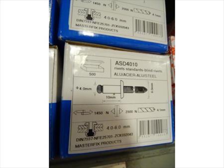Quantité : 2000 rivets de diamètre 4mm x 10mm de long 1600 vis à bois 3,5mm x 35mm de long 6000 agrafes de type 52 14 mm Envoi : sur demande