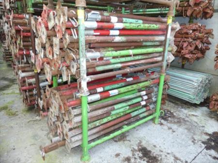 Etançons Marque : Muba et Schake Longueur fermée : 175 cm Longueur ouverte : 300 cm Quantité : 100 Dimensions du rack : 142 cm x 82 cm x 90 cm Nombre de rack : 2 Remarque : Chariot élevateur sur place