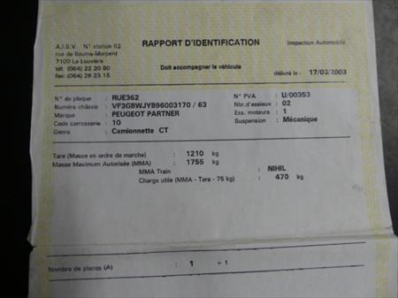 - Certificat de visite au contrôle technique (valable jusqu'au 17/03/2020)