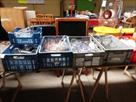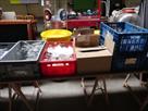 Remarque : chargement à charge de l'acquéreur, lot tel que sur photos, contenu des bacs en pvc et de la table inclus, bacs bleus en pvc non inclus