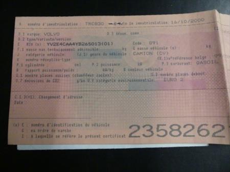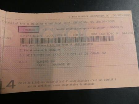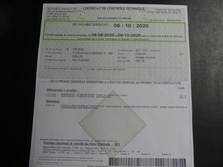 - Certificat de visite au contrôle technique (valable jusqu'au 06/10/2020)