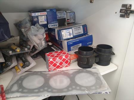 Lot de pièces de voitures récentes (dont VW Golf 7, Skoda Octavia, VW Polo, Renault Kangoo, etc.) comprenant BOSCH, FEBI, MAHLE, Débitmètre Continental et Siemens, Phare Dacia Lodgy 2019 (pâte cassée, etc.