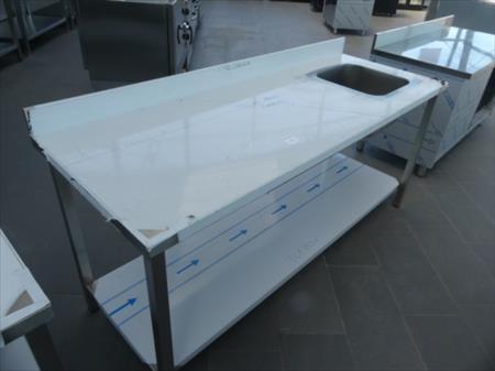 Plonge chef Dimensions intérieures du bac : 40 cm x 40 cm x 24 cm Dimensions totales : 190 cm x 70 cm x 95 cm Etat : neuf mais abimé lors de manipulation Présence éventuelle de coups et griffes