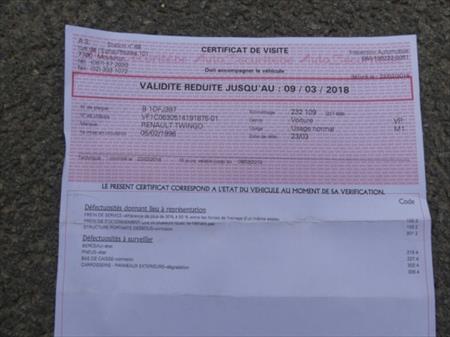 - Certificat de visite du contrôle technique (valable jusqu'au 9/03/18)