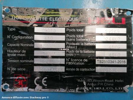 TRANSPALETTE ÉLECTRIQUE TECHNILIFT CBD15 TECHNILIFT
