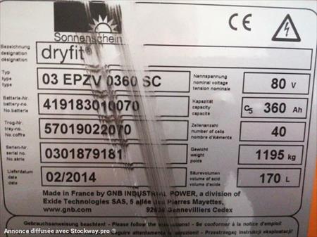 Batteries gel 80V- 390Ah - 3EPZV0360 SC - 02/2014