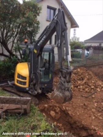 Mini-pelle VOLVO type EC35D Année : 2017 Heures : 2000 Poids : 3.5 t Longueur : 4,59 m - Largeur : 1,62 m - Hauteur : 2,47 m Cabine - Lame - Chenilles caoutchouc - Ligne hydraulique Coupleur hydraulique + 3 godets 1 brise-roche hydraulique